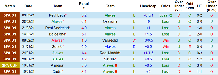 - Thống kê 10 trận gần nhất của Alaves