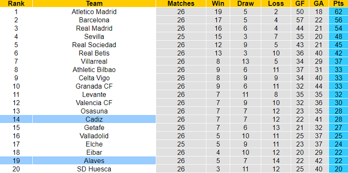 Trong khi đó, Alaves vẫn thu về những kết quả tương đối ổn trên sân nhà. Bằng chứng: 13/22 điểm họ có được tính đến thời điểm hiện tại tới từ các màn ‘tiếp khách’.