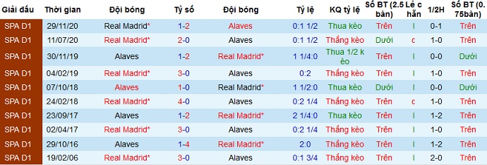 + Soi tỷ lệ kèo châu Á: Mặc dù được chơi trên sân nhà nhưng Alaves vẫn bị đánh giá thấp hơn hẳn đối thủ. Không những thế kèo chấp còn lên đến +1,25. Thế nhưng ở giai đoạn lượt đi hồi cuối tháng 11 chính Alaves đã đánh bại Real ngay trên sân của đối thủ với tỷ số 2-1.