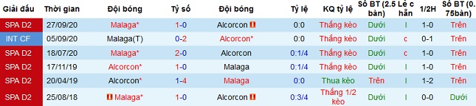+ Lịch sử đối đầu Alcorcón vs Málaga