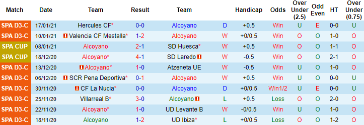 + Thống kê 10 trận gần nhất của Alcoyano
