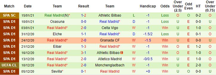 + Thống kê 10 trận gần nhất của Real Madrid