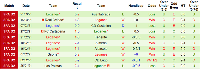 Leganes mùa này không có được thành tích tốt trên sân khách. Họ không thắng 10/14 trận sân khách kể từ khi Segunda Division 2020/21 khởi tranh và nhận tới 7 thất bại.
