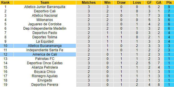 Bucaramanga từ trước tới nay chưa bao giờ được đánh giá cao ở Colombia. Sau chiến thắng ở vòng mở màn, Bucaramanga lộ nhiều yếu điểm và 2 lượt trận gần nhất họ đều thất bại. Phải làm khách trước America de Cali, việc Bucaramanga bị đánh giá thấp là điều không bất ngờ.