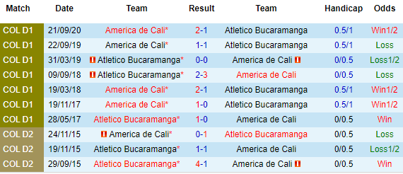 + Lịch sử đối đầu America de Cali vs Bucaramanga