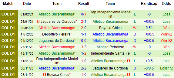 + Thống kê 10 trận gần nhất của Bucaramanga