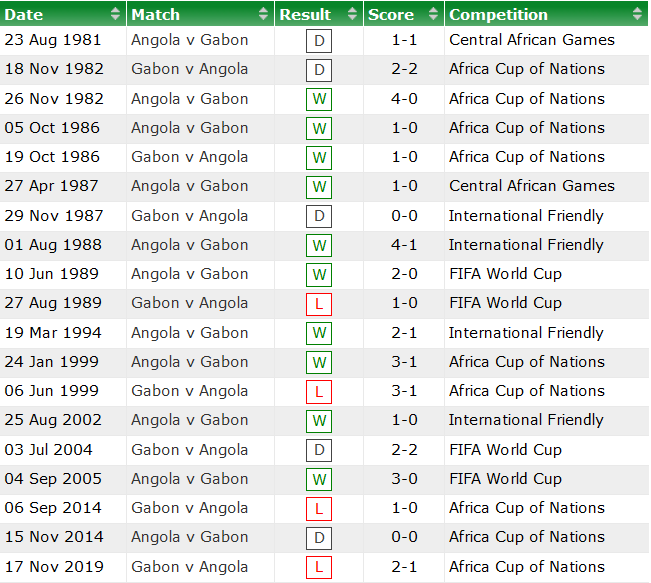 Gabon bất bại tới 15/19 lần chạm trán trước đây với Angola và thắng 10 trong số này. Họ hứa hẹn nâng số trận thắng với Angola lên con số 11 vào thứ Hai (29/3).