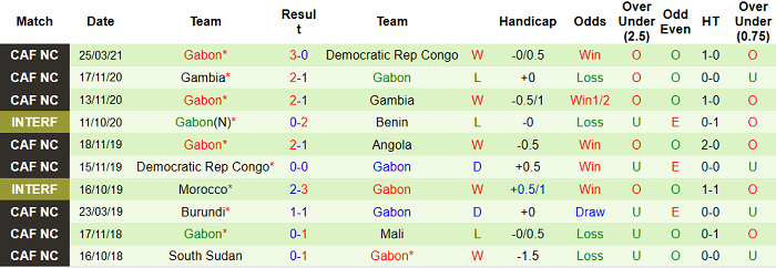 - Thống kê 10 trận gần nhất của Gabon