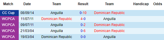 + Lịch sử đối đầu Anguilla vs CH Dominican