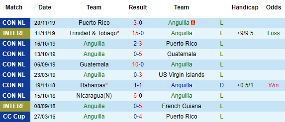 + Thống kê 10 trận gần nhất của Anguilla