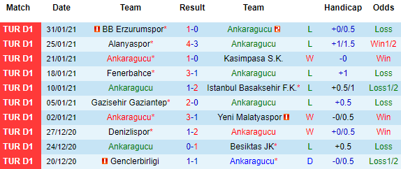 + Thống kê 10 trận gần nhất của Ankaragucu