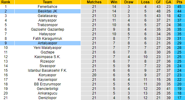 Đặt lên bàn cân so sánh, Antalyaspor chẳng thể bằng được Besiktas. Đội khách là 1 trong 3 cái tên đình đám của bóng đá Thổ Nhĩ Kỳ, bên cạnh Galatasaray và Fenerbahce. Trước khi vòng 23 này diễn ra, Besiktas cũng đang có vị trí thứ 2 trên BXH và chỉ kém đội dẫn đầu 1 điểm.