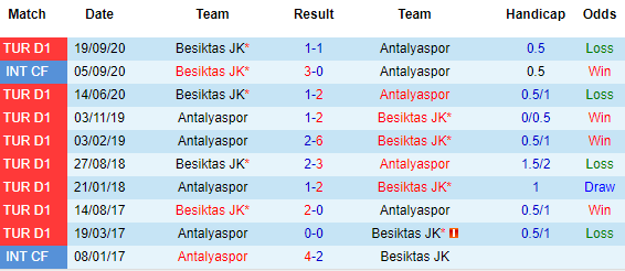 + Lịch sử đối đầu Antalyaspor vs Besiktas