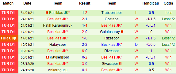 + Thống kê 10 trận gần nhất của Besiktas