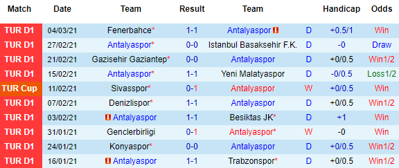 + Thống kê 10 trận gần nhất của Antalyaspor