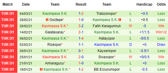 + Thống kê 10 trận gần nhất của Kasimpasa