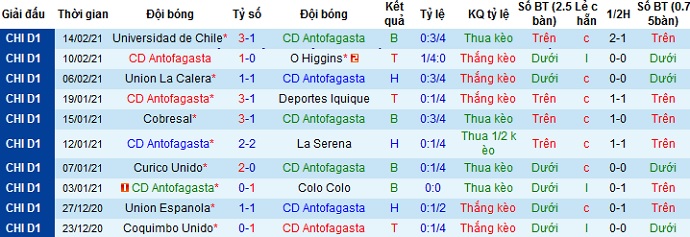 Trong 5 trận đấu gần nhất Antofagasta chỉ có được 2 trận thắng, 1 trận hòa và 2 trận thua. Thành tích sân nhà của đội bóng tốt hơn đôi chút với 2 trận thắng, 2 trận hòa và 1 trận thua sau 5 trận gần nhất tại đây.