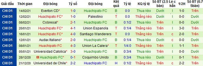 Với Huachipato, thành tích cuối mùa giải của đội bóng cũng không thật tốt khi thắng 3 và để thua 2 ở 5 trận đấu gần nhất. Đáng nói là thành tích sân khách của đội bóng lại rất tệ khi chỉ có nổi 1 trận hòa trong 7 lần du đấu cuối cùng, trong đó để thua trong cả 4 trận gần nhất.