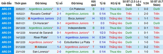 + Soi tỷ lệ kèo châu Á: Tuy được chơi trên sân nhà nhưng với phong độ kém cỏi hơn hẳn so với đối thủ nên Argentinos Juniors vẫn bị đánh giá là đội cửa dưới, tuy kèo chấp cũng chỉ ở mức +0,25.