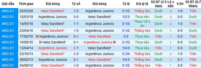 + Lịch sử đối đầu Argentinos Juniors vs Vélez Sársfield