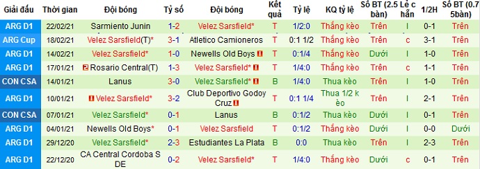 + Thống kê 10 trận gần nhất của Vélez Sársfield