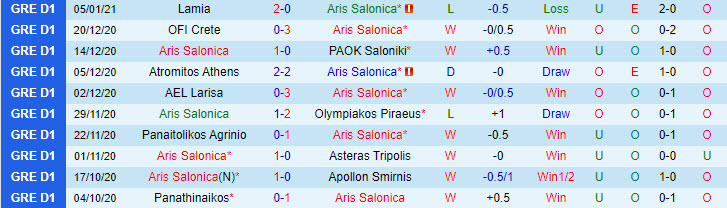 Aris Salonica đang là chú ngựa ô của giải VĐQG Hy Lạp 2020/21 khi nắm giữ vị trí thứ 2 sau 13 lượt trận đã đá. Nếu cứ duy trì được phong độ hiện tại, Aris Salonica tự tin sẽ lật đổ những đối thủ mạnh là PAOK hay Olympiakos trong cuộc đua vô địch.