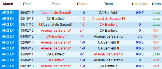 + Lịch sử đối đầu Arsenal Sarandi vs Banfield