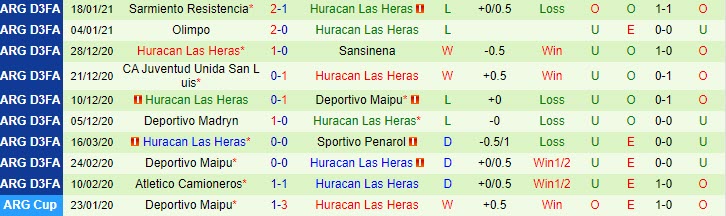 Lùi lại 6 lượt trận mới đây tại giải hạng 3 Argentina, Huracan Las Heras có được 2 trận thắng và nhận tới 4 thất bại. Lúc này, đội bóng của HLV D. Alaniz cũng không phải tập thể có tâm lý thi đấu vững vàng ở những trận xa nhà. Bằng chứng, họ thua tới 4, hòa 5 và thắng có 2 lần trong 11 trận sân khách vừa rồi.