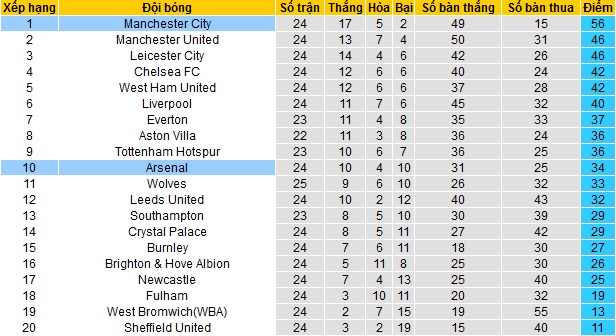 Sau chuỗi trận khá ấn tượng từ hồi cuối tháng 12 năm ngoái, những tưởng Arsenal sẽ khôi phục lại vị thế của mình tại giải ngoại hạng Anh. Thế nhưng đội bóng thành London tiếp tục gây thất vọng trong các trận đấu gần đây và hiện giờ đã tụt xuống vị trí thứ 10 với 34 điểm sau 24 vòng đấu.