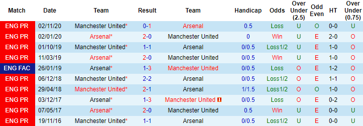 Phong độ và thống kê đối đầu Arsenal vs Man United