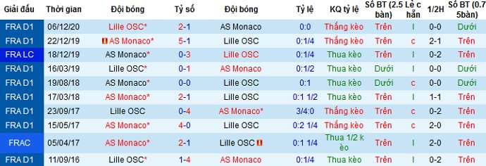 + Lịch sử đối đầu AS Monaco vs Lille