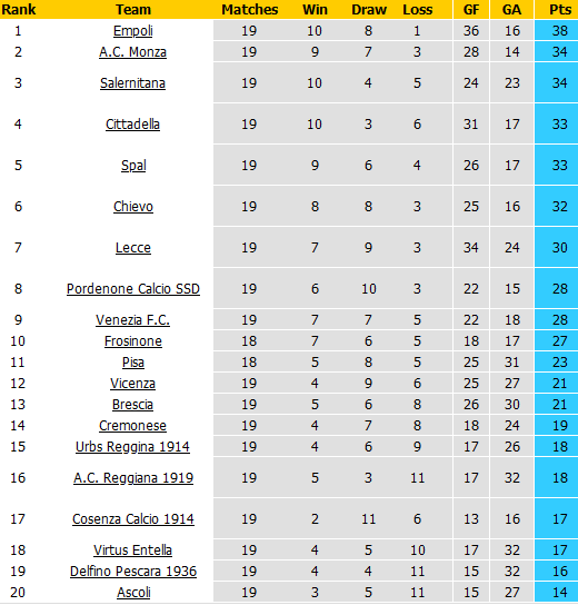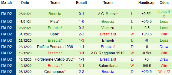 Vị trí bét bảng với 14 điểm qua 19 vòng đầu tiên là thành tích bết bát đáng lo ngại trước khi bước vào giai đoạn lượt về sắp tới. Ở chiều ngược lại, Brescia đang có phong độ sân khách khá ấn tượng với 4 trong 5 trận vừa qua đều bất bại.