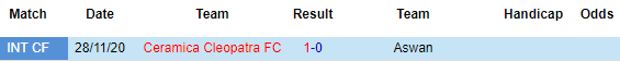 Dự đoán tỷ số Aswan 0-1 Ceramica Cleopatra