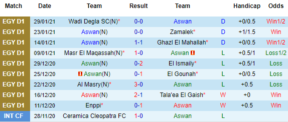 Trong khi ấy, Aswan thi đấu khá thất thường và mới có 9 điểm/9 trận, chỉ hơn vị trí nguy hiểm gần nhất có 1 điểm, cách biệt rất mong manh. Sau khởi đầu hoàn hảo với 2 chiến thắng mở màn, Aswan trải qua mạch 7 vòng liên tiếp chỉ biết hòa với thua.