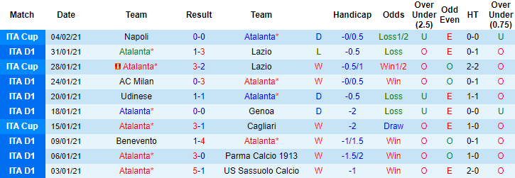 + Thống kê 10 trận gần nhất của Atalanta