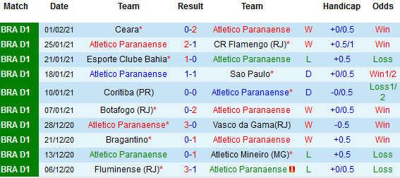 + Thống kê 10 trận gần nhất của Athletico Paranaense