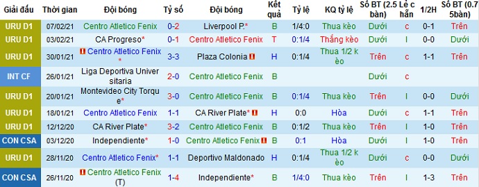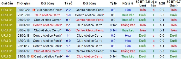 Thế nhưng trong cả 5 lần gặp nhau trước đó khi Atlético Fénix được thi đấu trên sân nhà họ cũng chỉ có được 1 lần duy nhất giành chiến thắng trước CA Cerro. Cộng với phong độ khá tiến bộ của đội khách trong giai đoạn vừa qua nên lựa chọn cửa dưới ở trận đấu này là điều hợp lý.