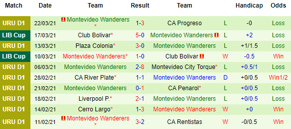 Trong khi đó, Montevideo Wanderers có dấu hiệu buông xuôi, và càng chơi thì CLB này càng cho thấy tinh thần rệu rã. 3 vòng liên tiếp gần đây Montevideo Wanderers đều thất bại và tính cả đấu trường Copa Libertadores thì họ đã thua 4/5 trận mới nhất.