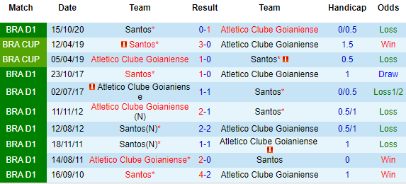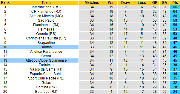 Nếu nhìn vào tên tuổi của đôi bên, có thể thấy Atletico GO chẳng thể nào so sánh được với Santos. Đội khách là 1 trong những cái tên giàu thành tích ở xứ Samba, và hiện đang sở hữu số lần vô địch giải đấu nhiều thứ 2, chỉ sau Palmeiras. Mùa 2019, Santos cũng cán đích ở vị trí thứ 2.
