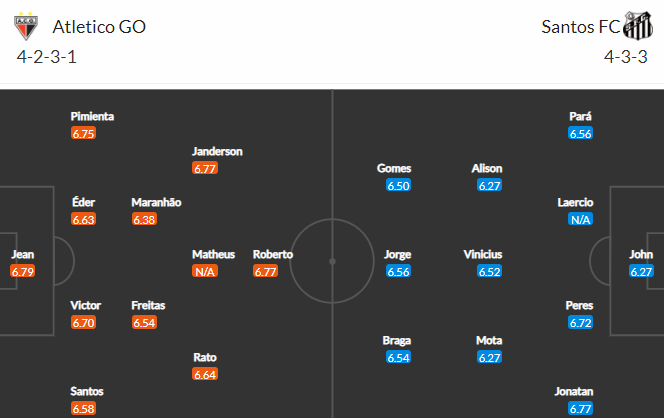 Đội hình dự kiến Atletico GO vs Santos