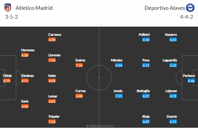 Atletico Madrid vẫn đang dẫn đầu bảng xếp hạng La Liga. Sau 27 vòng đấu đoàn quân của HLV Diego Simeone đã giành được 63 điểm, ghi 50 bàn, thủng lưới 18 lần. Trong khi đó với số trận tương tự, Alaves mới giành được 23 điểm, xếp ở vị trí thứ 18. Đội bóng mạnh hơn được thi đấu trên sân nhà, kịch bản dễ đoán là thất bại dành cho đội khách.