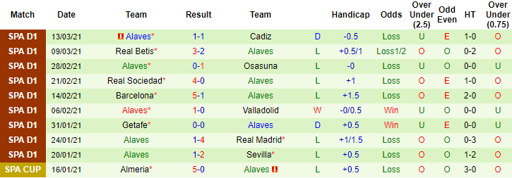 + Thống kê 10 trận gần nhất của Alaves