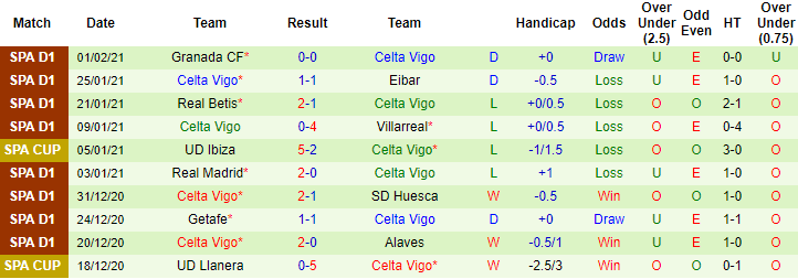 + Thống kê 10 trận gần nhất của Celta Vigo