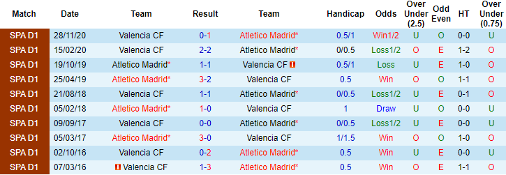 Valencia từng là đối thủ không dễ đối phó với Atletico Madrid. Trong vòng 45 trận đối đầu từ năm 2002 đến nay, Valencia bất bại 27 lần với 11 chiến thắng và 16 trận hòa. Lần gần nhất làm khách trên sân của Atletico Madrid, Valencia buộc đối thủ phải chia điểm với tỷ số hòa 1-1. Tuy nhiên ở lần tái đấu sắp tới, Valencia không mang đến hứa hẹn vào khả năng thoát thua.