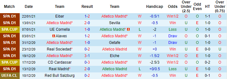 + Thống kê 10 trận gần nhất của Atletico Madrid