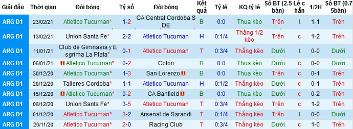 + Soi tỷ lệ kèo châu Á: Phong độ của cả hai đội vào thời điểm hiện tại đều khá tệ. Tuy nhiên Atlético Tucumán có được lợi thế khi chơi trên sân nhà nên vẫn được đánh giá là đội cửa trên với kèo chấp cũng chỉ là -0,25.