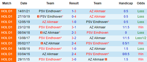 Màn trình diễn của đôi bên thời gian gần đây không tệ, nhưng AZ Alkmaar dường như đang có chút nhỉnh hơn. Họ thắng 5/6 vòng mới nhất trong khi bên phía đối diện, PSV Eindhoven thắng 3 và hòa 3 ở cùng quãng thời gian đó.