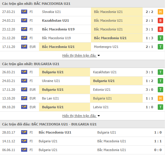 Bắc Macedonia U21 có thành tích đối đầu ấn tượng trước Bulgaria U21. Trong vòng 3 lần chạm trán Bulgaria U21 trước đây, Bắc Macedonia U21 bất bại với 1 chiến thắng và 2 trận hòa, giữ sạch lưới 2 lần. Tuy nhiên trận đối đầu gần nhất cũng đã diễn ra cách đây 4 năm.