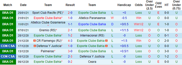 + Thống kê 10 trận gần nhất của Bahia