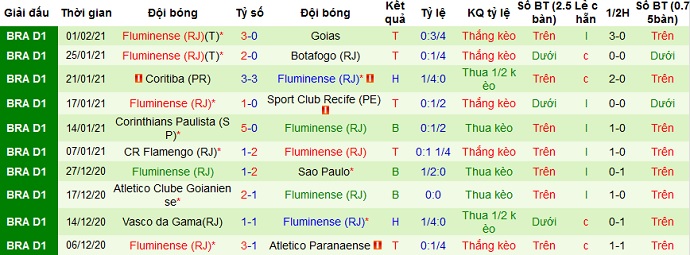 + Thống kê 10 trận gần nhất của Fluminense
